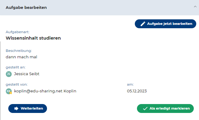 Je nachdem, in welchen Redaktionsumgebungsmenü du dich befindest und das Inhalte-Panel aufrufst, öffnet sich ein anderer Unterpunkt. Im Menü “Aufgaben” gelangst du zum Beispiel direkt in den Bereich “Aufgaben bearbeiten”. | Halte dich bitte an die vorgegebenen Prüfungsschritte und führe diese gewissenhaft durch. Gib bitte nur von dir sorgfältig geprüfte Inhalte frei und auch erst nachdem du die entsprechenden Schulungen dafür erhalten hast! | ![]() |