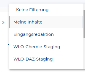 Zuständigkeit(sfilter) | Auswahlmenü zum Filtern der Inhalte nach Zuständigkeit. Hier findest du nun auch die Möglichkeit die Inhalte nach “Eingangsredaktion” zu filtern. | ![]() |