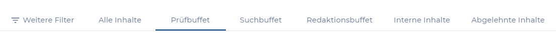 Ein neu vorgeschlagener Inhalt landet zunächst auf dem Prüfbuffet. Aber auch Inhalte die nochmal geprüft werden sollen werden hier angezeigt. Das kann der Fall sein, wenn z.B. die Quelle, von der sie stammen, nach einer gewissen Zeit erneut gecrawlt wurde.
