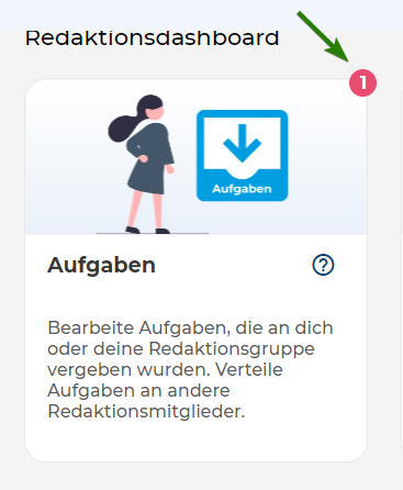 Das Dashboard zeigt dir alle wichtigen Funktionen, die du für deine Arbeit in deiner Fachredaktion brauchst.